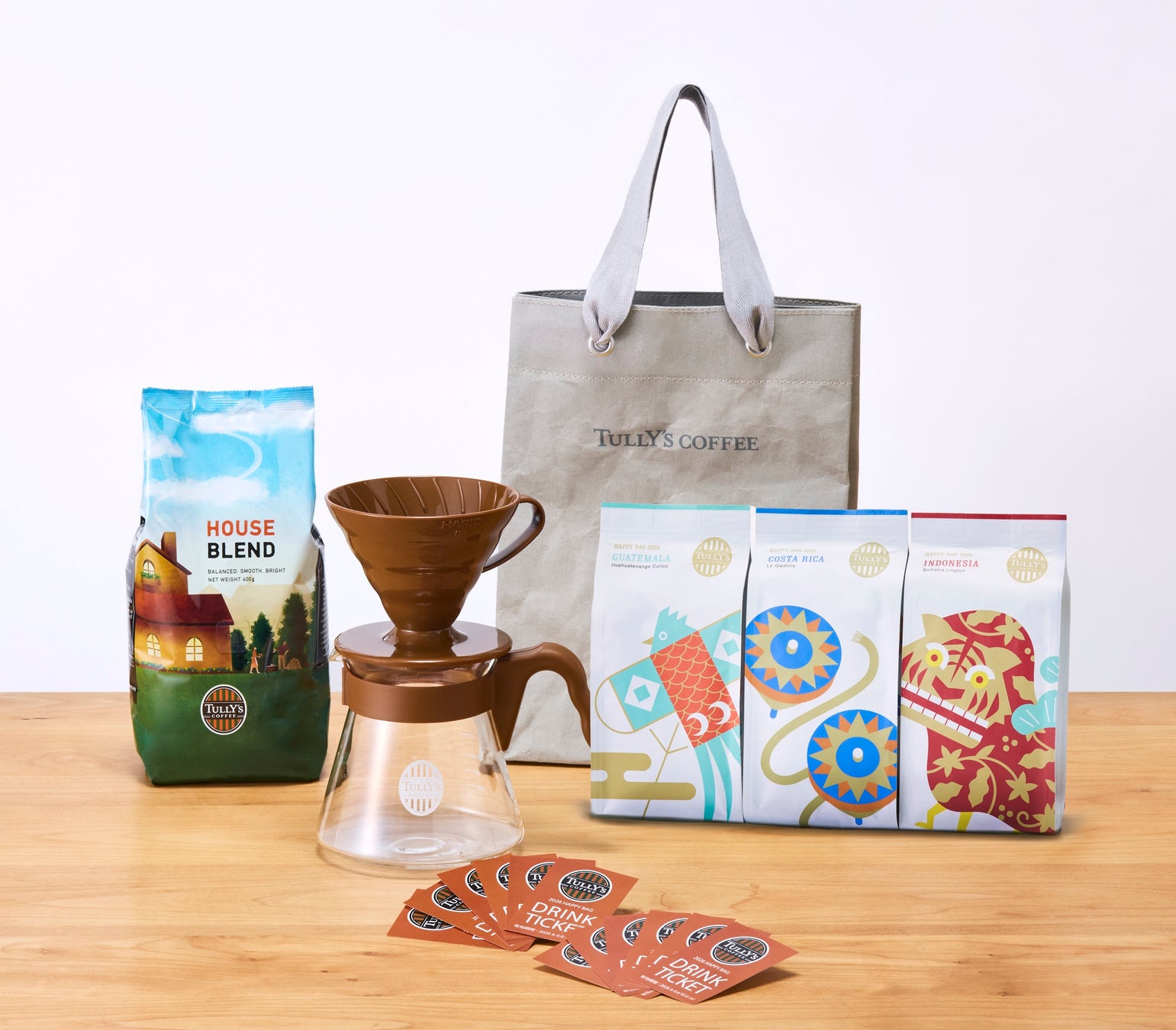 普段使いしやすいスクエア型のトートバッグをはじめ、定番シングルサーブ5種やポケットサイズのカフェオレベース、ロイヤルミルクティーベースなど、手軽にタリーズの本格的な味わいをお楽しみいただけるセットです。