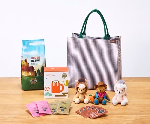 実用性が高く、季節問わずお使いいただけるトートバッグに、爽やかな甘みのコーヒーや、定番シングルサーブ5種に加えて、フローズンドリンク「マンゴータンゴスワークル®」の味わいを表現した、「ベアフル®」型のグミなどを詰め合わせました。ボールチェーン付きの干支ミニテディは、限定トートバッグに付けるなど、お出かけのお供にもおすすめです。