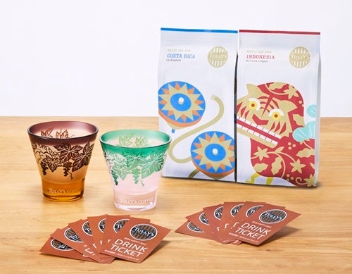 マイルドなコスタリカと濃厚で力強いインドネシアのコーヒー、ペアで楽しめるタリーズのロゴ入りの彫刻硝子グラスのセットです。香り高いコーヒーと上質なグラスで、ご自宅でも特別なコーヒータイムを演出できます。
