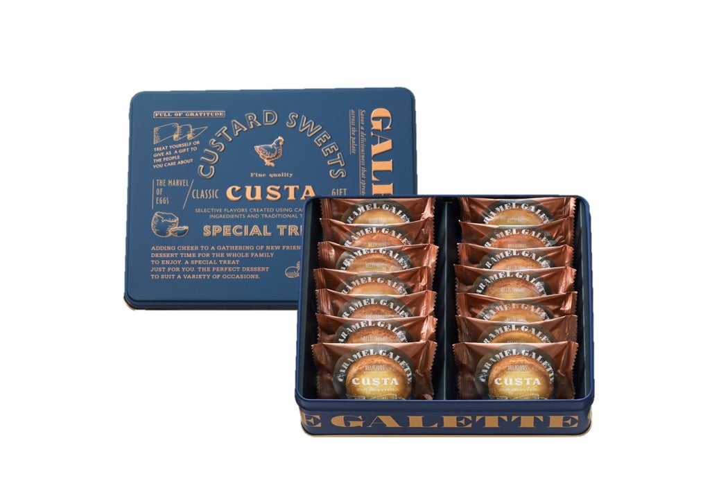 たまごの風味豊かなクッキーでほろ苦いキャラメルフィリングを包み込んだ、ほろほろ食感のガレット。