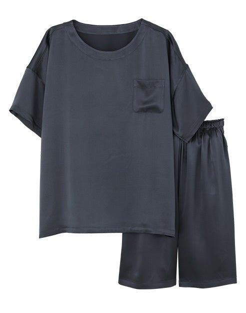 通気性も良く、衣服内の環境を快適に保ってくれる天然素材のパジャマとして、発売以来多くのお客さまに支持をいただいているパジャマです。その「KAIMIN NAVI」から、就寝時はもちろんおうちでのリラックタイムにもぴったりのシルク100%サテン素材のTシャツとハーフボトムのセットアップルームウェアを発売しました。紳士は半袖半パンツ、婦人はヒジ・ヒザまわりもカバーする5分袖5分丈パンツのスタイル。いずれも広めのネックラインとドロップショルダーデザインでゆったりしたシルエットに仕上げました。さらに、就寝時の乾燥やムレ、寝返りなどで起こる髪のダメージを抑制するケアアイテムとして話題のナイトキャップもラインアップ。フリル調のかわいいデザインで、着脱がしやすいゴム紐付タイプです。人生の約4分の1は睡眠に費やすと言われています。シルク100%のプレミアムな素材感で、心地よい眠りを体感ください。