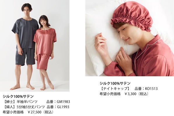 人生の約4分の1は睡眠時間。シルク素材でここちよい眠りを人気のKAIMIN NAVIシルクシリーズからTシャツハーフボトムのルームウェアと話題のアイテム「ナイトキャップ」発売