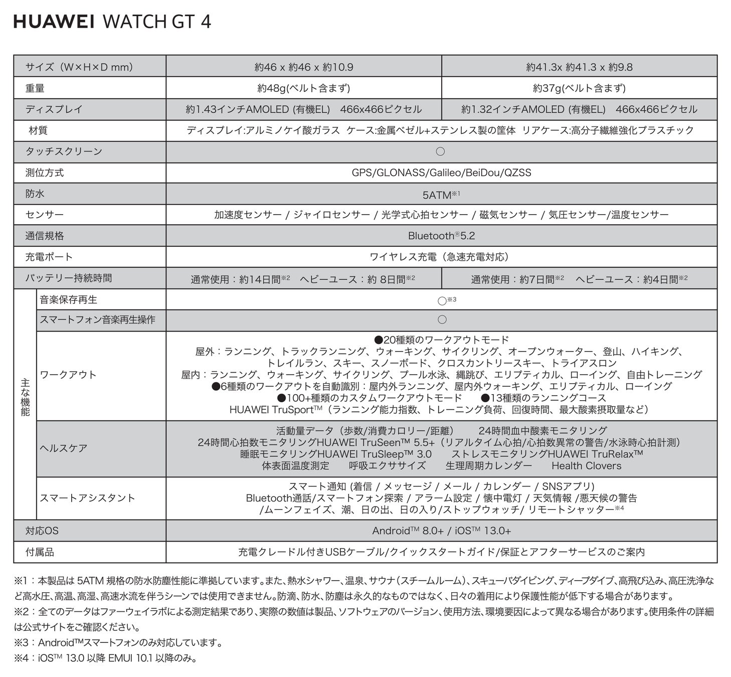 『HUAWEI WATCH GT 4』の主な仕様