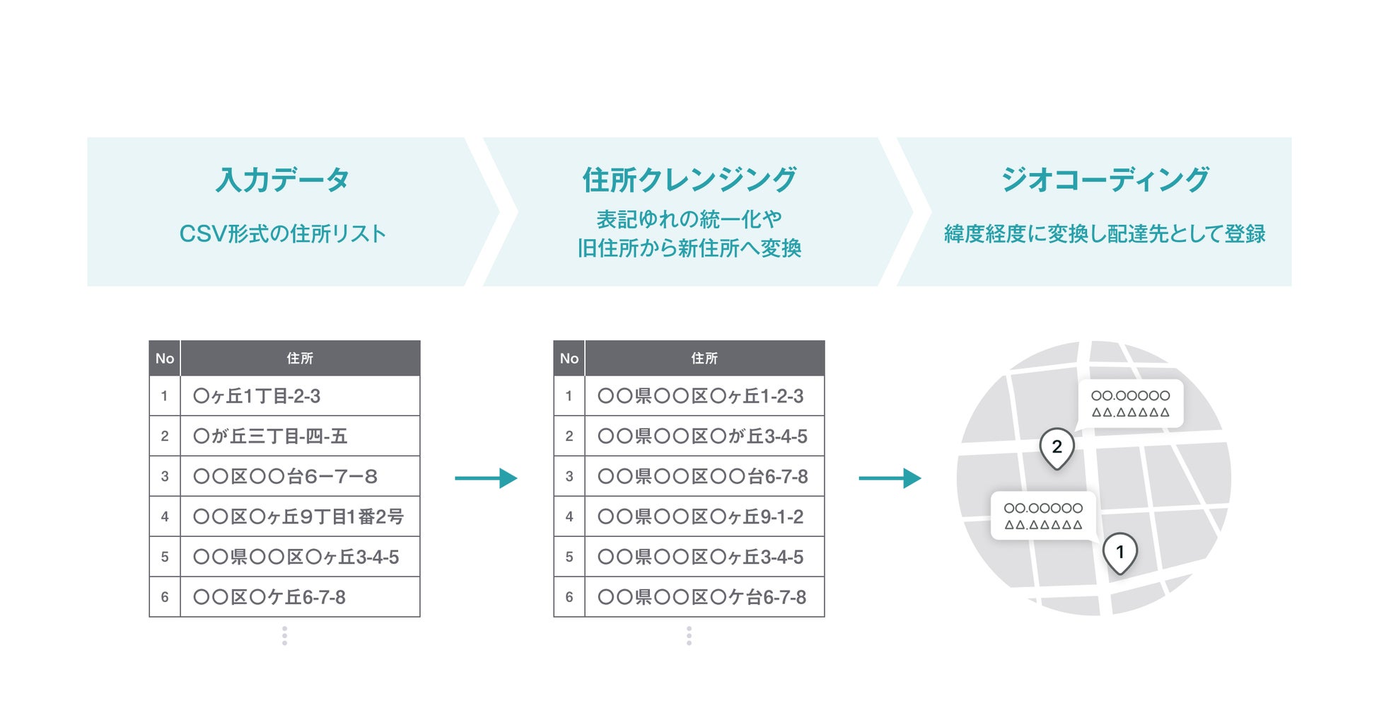~住所リストのCSVインポートに対応!独自のジオコーディング技術で正確な配達先を登録でき、業務効率化を支援~