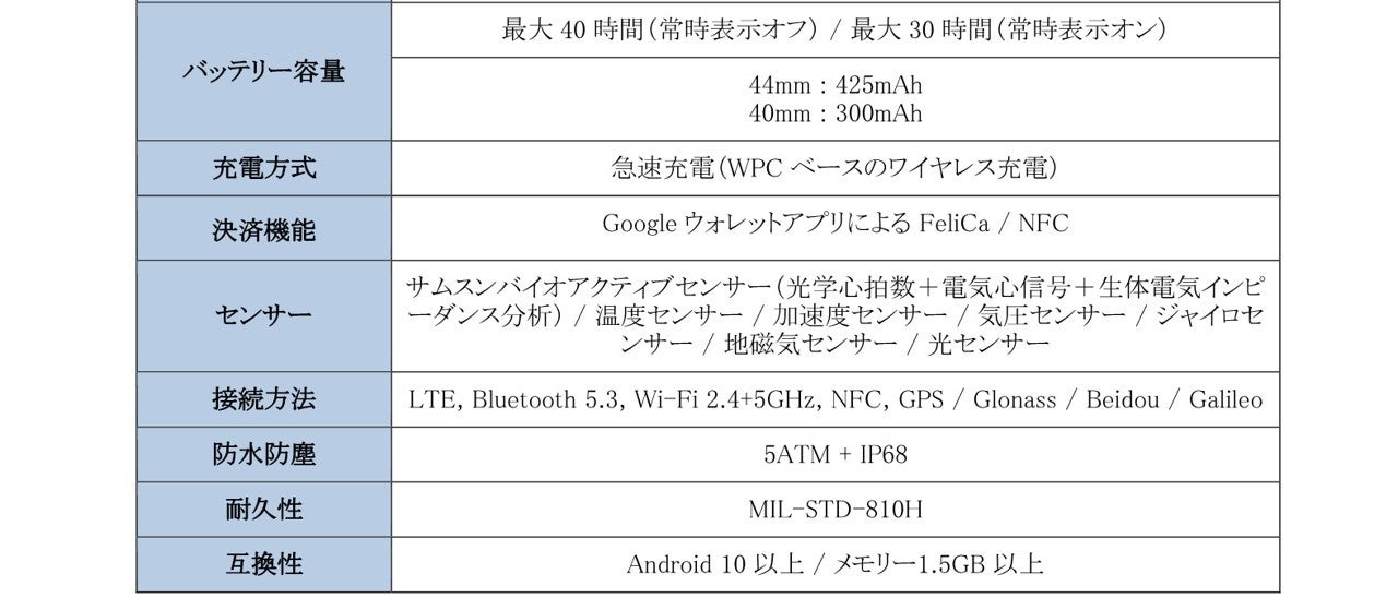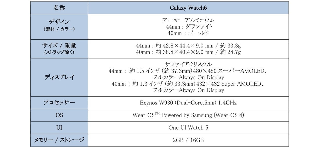 <主な仕様 : 「Galaxy Watch6」>