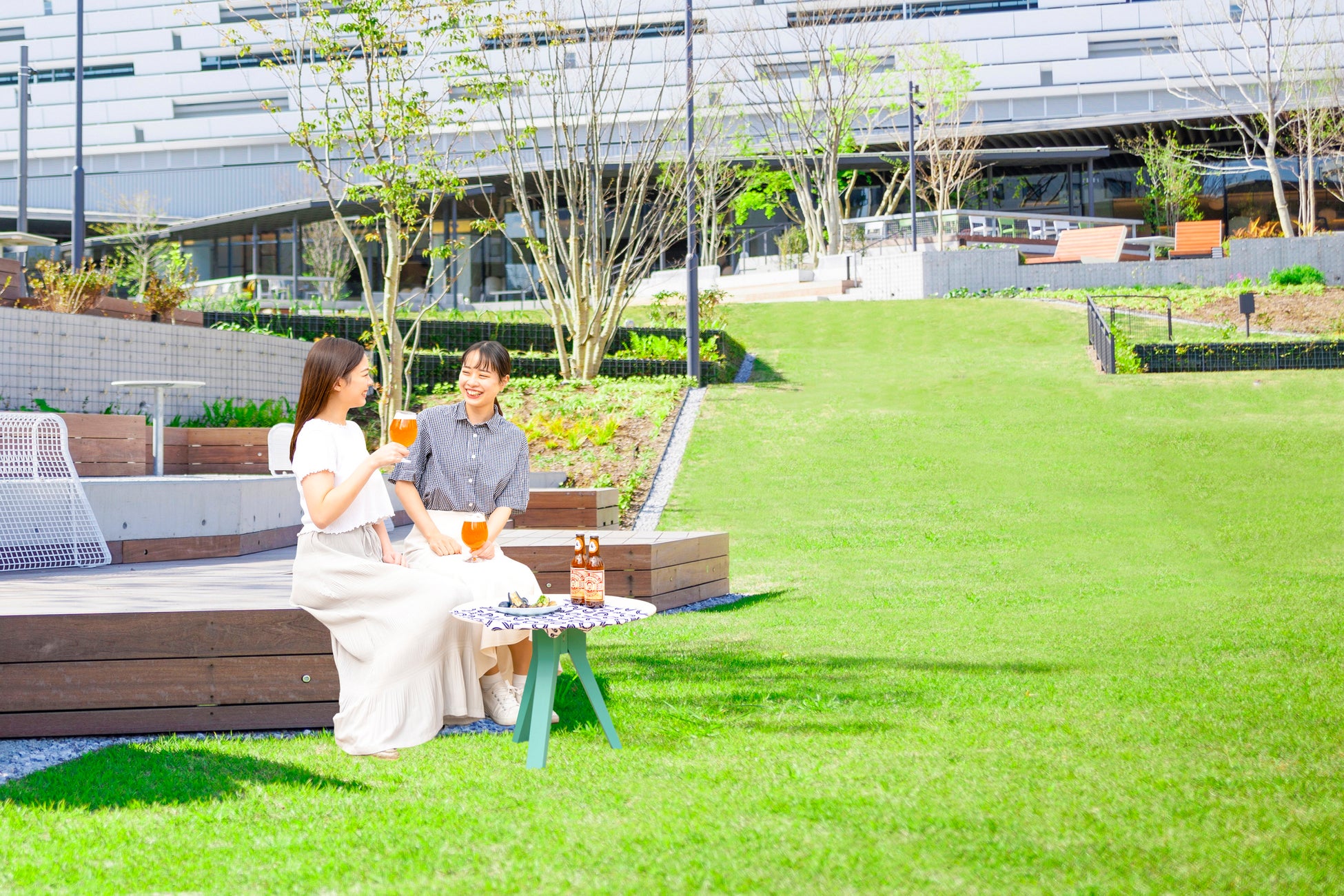 水なすモーニングビアガーデンは、OMO7大阪のホテル棟の前に広がる広大なガーデンエリア「みやぐりん」で開催します。ガーデンエリア「みやぐりん」は、敷地の半分以上である約7,600平米を誇り、都市にありながらも緑に囲まれた開放的な空間です。広大なガーデンで朝日を浴びながらビールを味わうといった、都市ではなかなか体験することのできない、開放感あふれるビアガーデンを楽しめます。