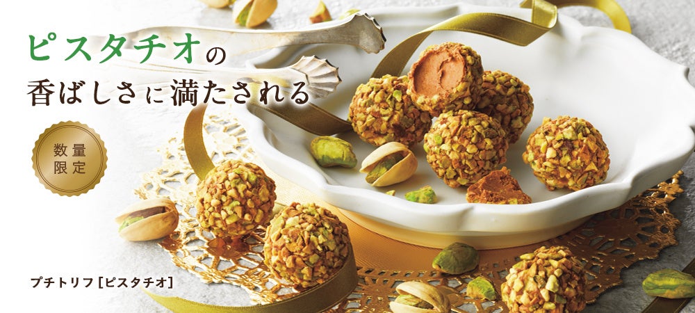 ピスタチオの魅力があふれる「プチトリフ[ピスタチオ]」が登場。他にもピスタチオを使った商品が盛りだくさん。バレンタインの贈り物や自分へのご褒美にもおすすめです。