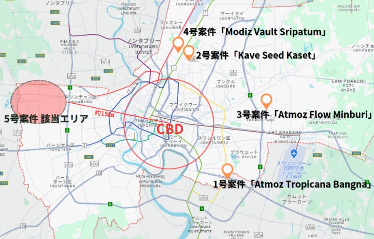 幹線道路のカンチャナセピーク通りや商業施設から徒歩で約10分と生活利便性が高く、本プロジェクト敷地から車で10分の距離には、MRTブルーラインの「ラックソーン駅」があり、バンコク中心地の「シーロム」駅まで約25分でアクセス可能なエリアとなっております。