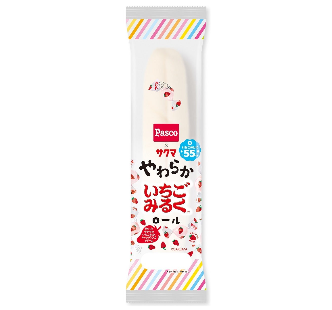ふんわりやわらかい白焼きのパン生地で、「いちごみるく」を砕いたキャンディ入りクリームをはさんでいます。キャンディが溶けにくいようクリームの配合を工夫しているため、“シャリシャリ”とした食感と「いちごみるく」の味わいをしっかりと感じられます。パッケージでは、「いちごみるく」の袋をイメージしたカラフルなデザインを採用しました。