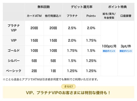 従来の優遇に加え、新たにランクに応じてデビットカードの還元率を優遇します。