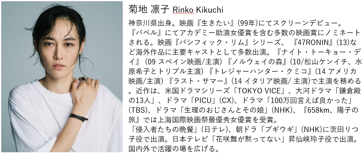『バベル』にてアカデミー助演女優賞を含む多数の映画賞にノミネートされる。映画『パシフィック・リム』シリーズ、 『47RONIN』(13)など海外作品に主要キャストとして多数出演。『ナイト・トーキョー・デイ』 (09 スペイン映画/主演) 『ノルウェイの森』(10/松山ケンイチ、水原希子とトリプル主演) 『トレジャーハンター・クミコ』(14 アメリカ映画/主演) 『ラスト・サマー』(14 イタリア映画/ 主演)で主演を務める。近作は、米国ドラマシリーズ「TOKYO VICE」、大河ドラマ「鎌倉殿の13人」、ドラマ「PICU」(CX)、ドラマ「100万回言えば良かった」(TBS)、ドラマ「生理のおじさんとその娘」(NHK)、『658km、陽子の旅』では上海国際映画祭最優秀女優賞を受賞。「侵入者たちの晩餐」(日テレ)、朝ドラ「ブギウギ」(NHK)に茨田りつ子役で出演。日本テレビ「花咲舞が黙ってない」昇仙峡玲子役で出演。国内外で活躍の場を広げる。
