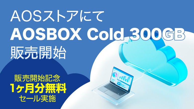 期間中は「AOSBOX Cold 300GB」を【1ヶ月分無料】でご提供いたします。ストア会員登録後にご購入いただくと、ポイント付与や会員限定割引の適用でさらにお得にご利用いただけます。