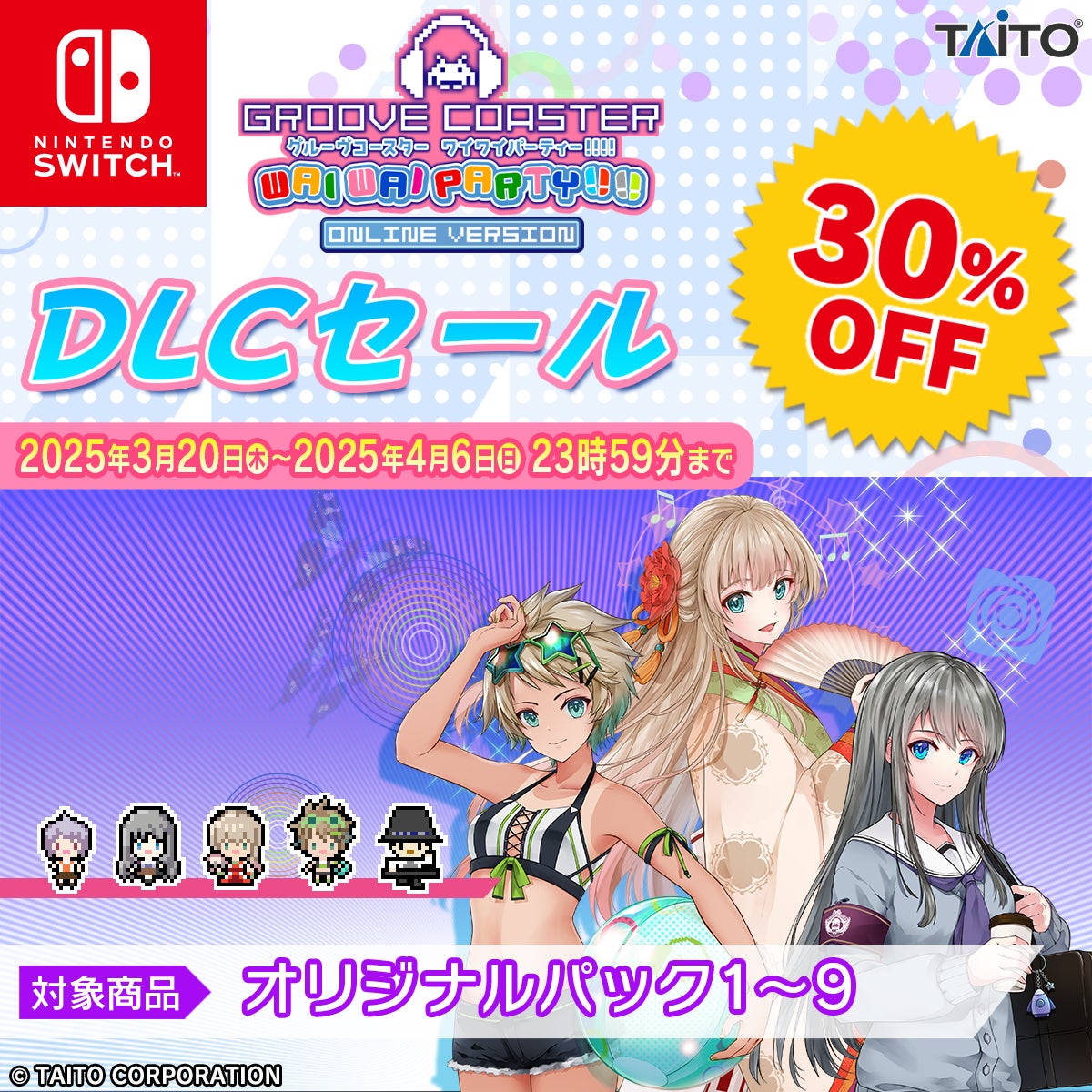 『グルーヴコースター ワイワイパーティー!!!!』本体ソフトにはアニメ、ポップス、VTuber、ボカロ、東方Project、オリジナルなどさまざまな人気曲も収録!さらに、対象追加パックがお得に購入できるDLCセールも開催中!