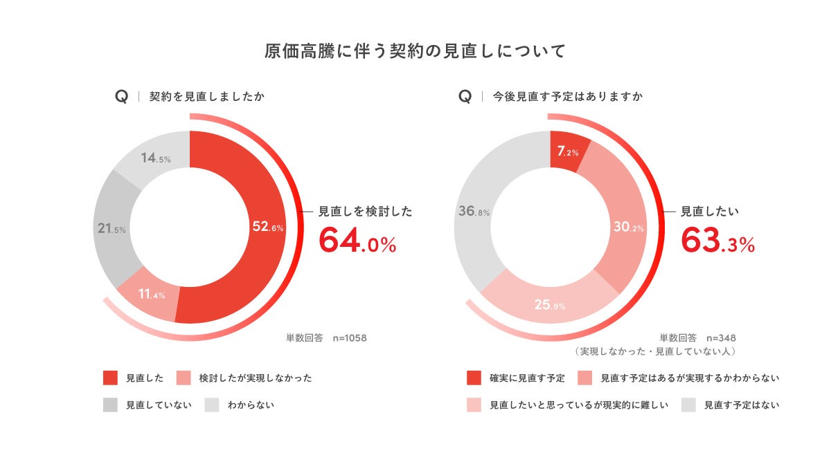 ・6割以上が原価高騰に伴い取引先との契約を「見直した・見直しを検討した」と回答