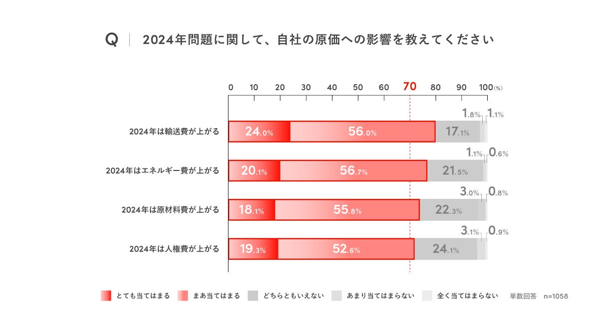 ・7割以上が2024年問題で自社の原価が上昇すると回答し、2024年も引き続き原価高騰に伴う契約見直し業務が課題となる「契約の2024年問題」の存在が明らかに