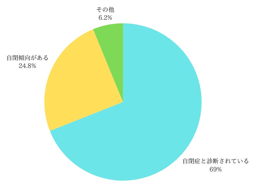 今回のアンケート回答者は(1)・(2)より、自閉症のお子さんは男の子が6割、自閉症と診断されているケースが約7割であることがわかりました。