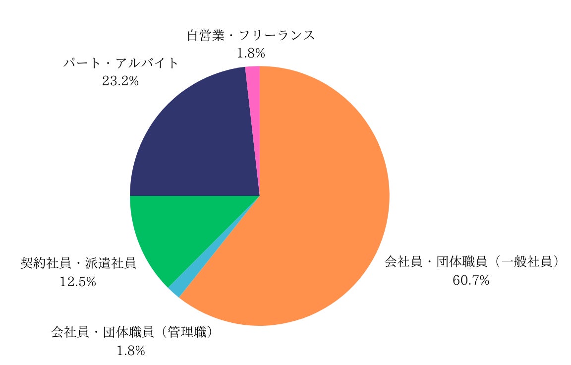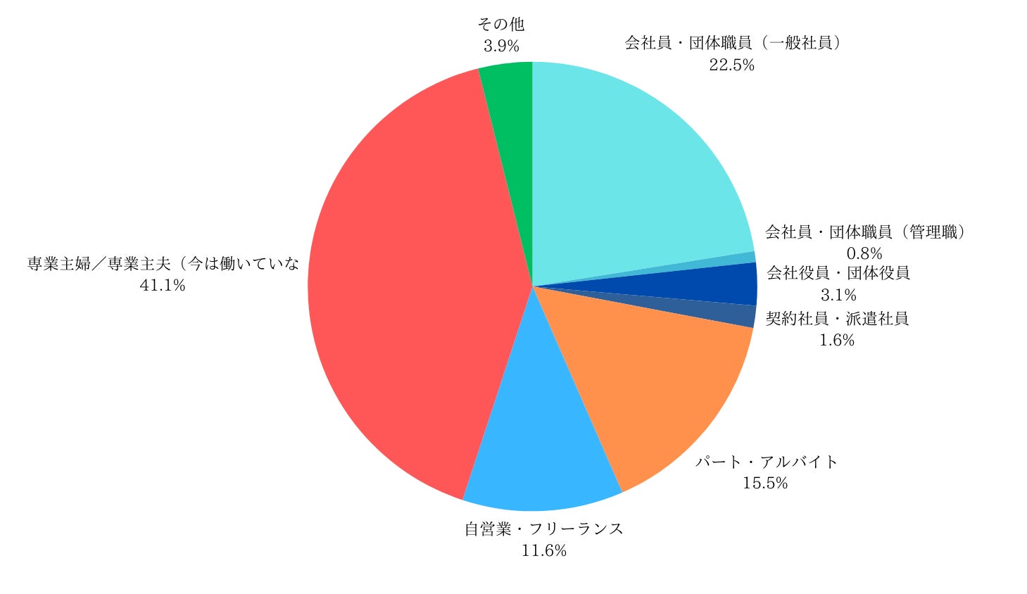 現在、働いていない方が4割、時間の調整ができるパートやフリーランスといった働き方をしている方が約3割いることがわかりました。