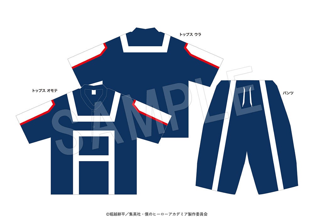 緑谷出久たち1年A組6人の描き下ろしビジュアルを使用した「アクリルスタンド」や、コラボならではの「ロッカーキー風キーホルダー」「スパバッグ」、通販商品として雄英高校体操服をイメージした「館内着レプリカ」など新作アイテムが多数登場!