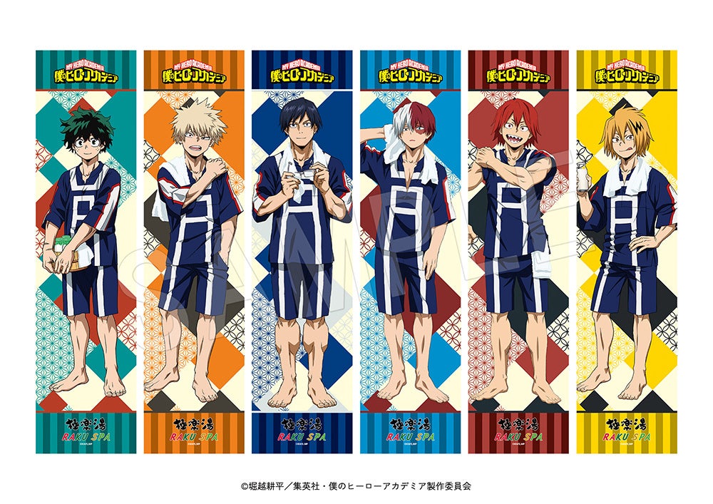 TVアニメ『僕のヒーローアカデミア』×極楽湯・RAKU SPAコラボキャンペーンが開催!館内着姿の描き下ろしビジュアルを使用した「アクリルスタンド」や「館内着レプリカ」など新作グッズが登場!