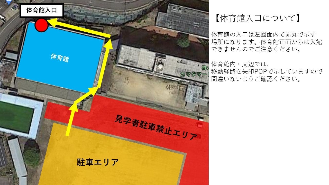 ※体育館内は空調設備がつきますが特に2F観覧スペースは暑くなりますので、うちわやハンディファン等をご持参いただき暑さ対策をお願いいたします。