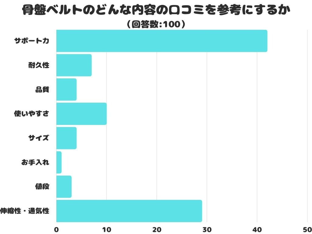 骨盤ベルトのどんな内容の口コミを参考にするかをアンケートにて調査したところ、1位は「サポート力」でした。