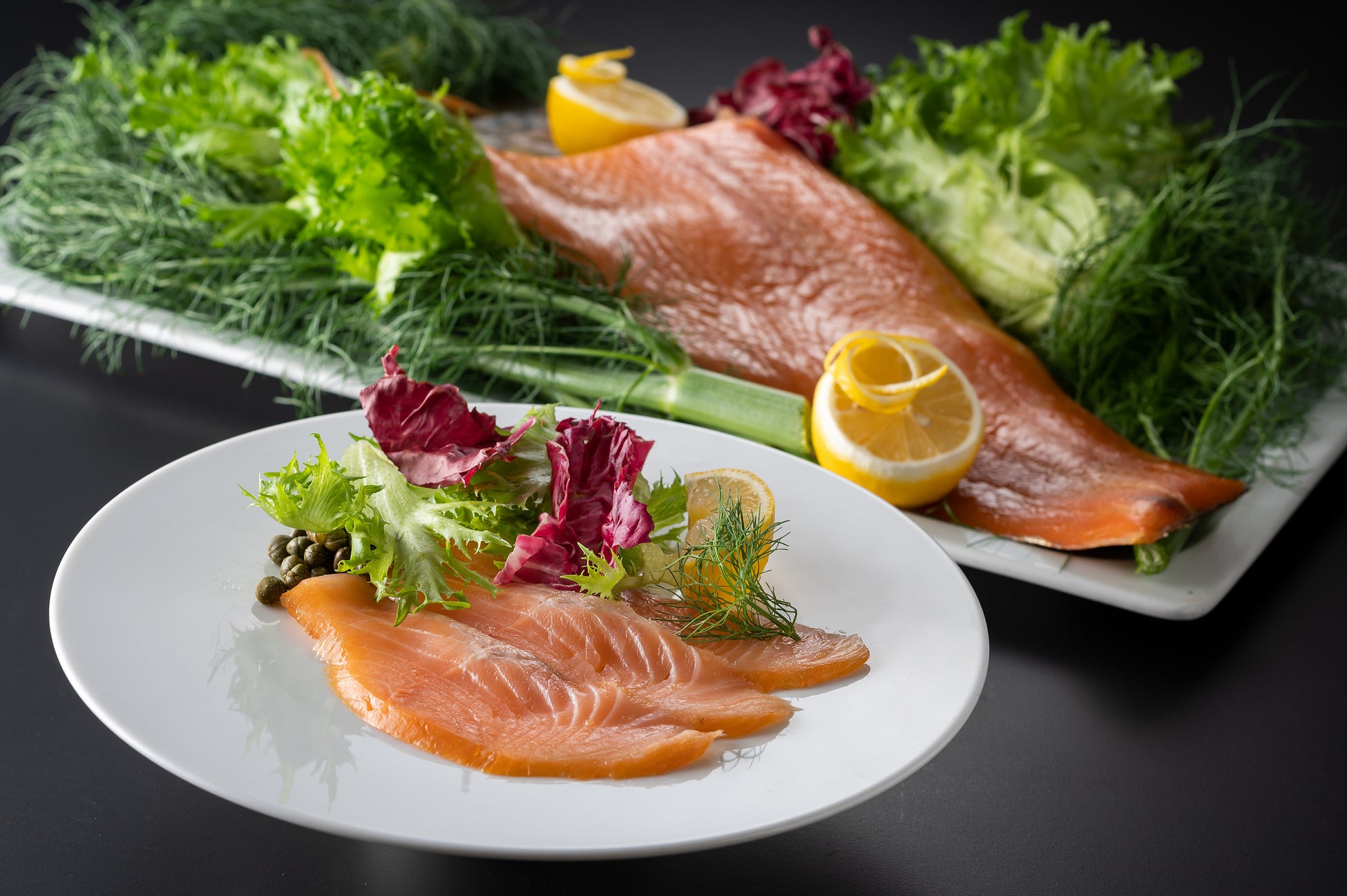 (例) スモークサーモン(倉敷れたすのリーフサラダ) \1,800