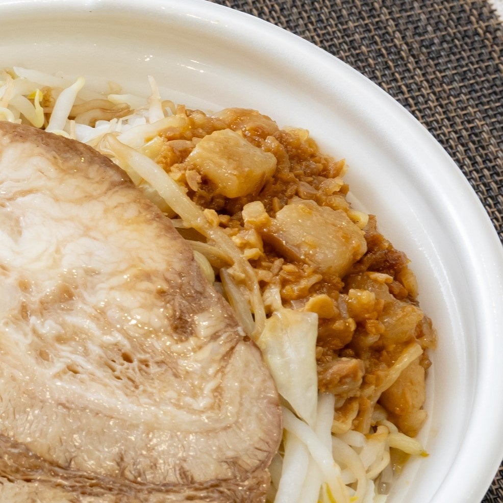 豚ラーメンの味のポイントにもなる背油にんにく。ラードで油脂感を、たまり醤油で醤油感をアップさせた特製仕様に。現行品の約1.5倍に増量することで、より濃厚なにんにくと背脂を味わえます。