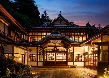 創業以来約140年の長い歳月を重ねた、歴史と四季折々の名園をお楽しみいただける旅館です。古人の心の風景を残す佇まいの本館は、ノスタルジックな雰囲気が色濃く漂い、大正期のままの面影を留めています。