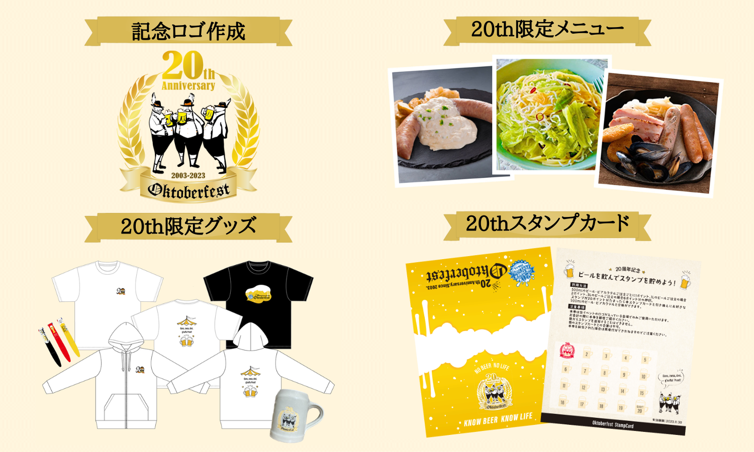 オクトーバーフェストの定番メニューをふんだんに盛り込んだ20周年限定プレートや限定のヤードグラスでのビール提供などさまざまな限定グルメが登場します。