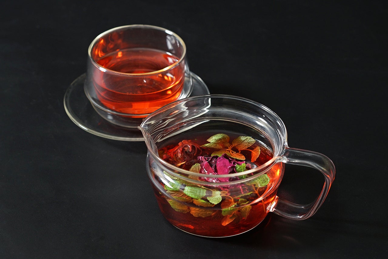 ハイビスカス、バラの花びらを浮かべたトップラウンジオリジナルフレーバーティー