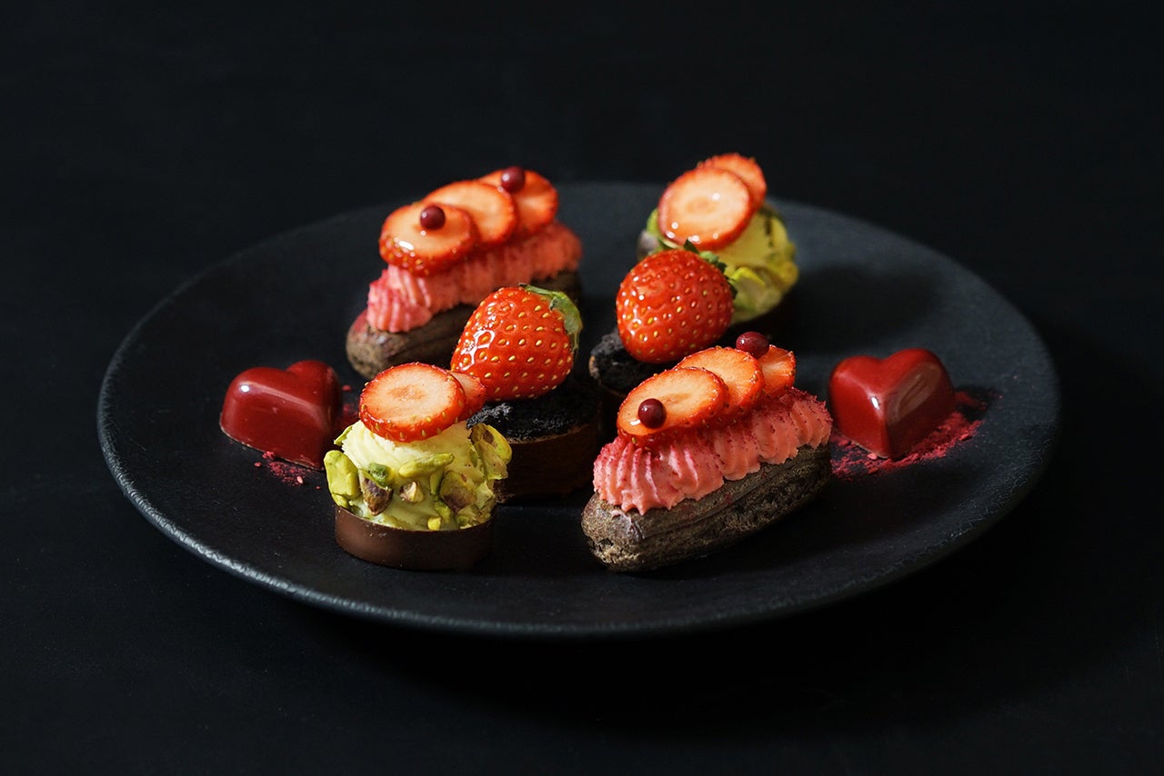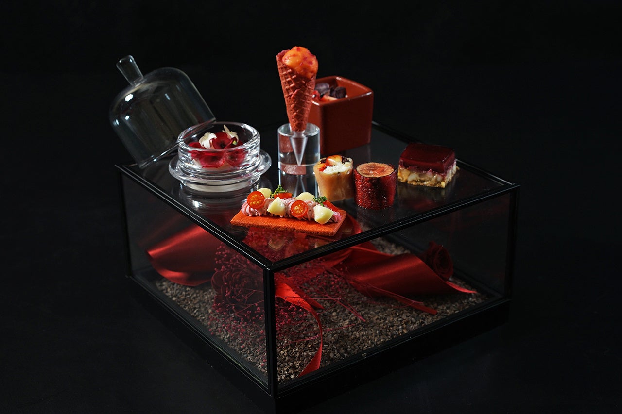 「あまりん」は、濃厚な甘みとほのかな酸味、宝石のように艶やかな深紅色が特長の希少ないちご。その鮮烈な赤をテーマに、ホテルパティシエによるスペシャルスイーツとフレンチシェフによるセイボリーをご用意いたしました。口に含んだ瞬間に広がる芳醇な果実味と、目にも美しい華やかなアフタヌーンティーが、冬の午後を優雅に彩ります。旬の味覚「あまりん」を五感で堪能できる、ルージュが織りなす魅惑のティータイムをお楽しみください。