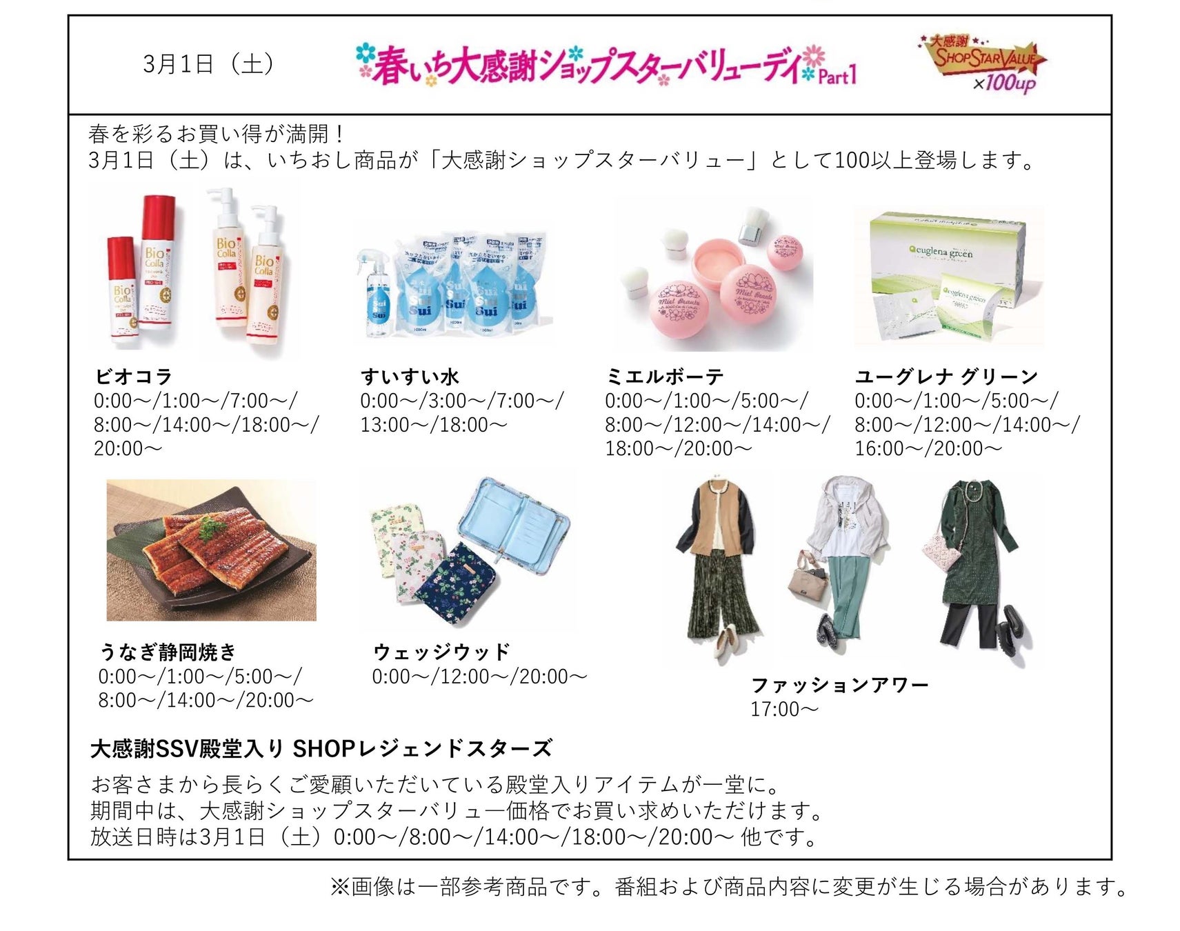 3月1日(土)、2日(日)は、「春いち大感謝ショップスターバリューデイ」を放送