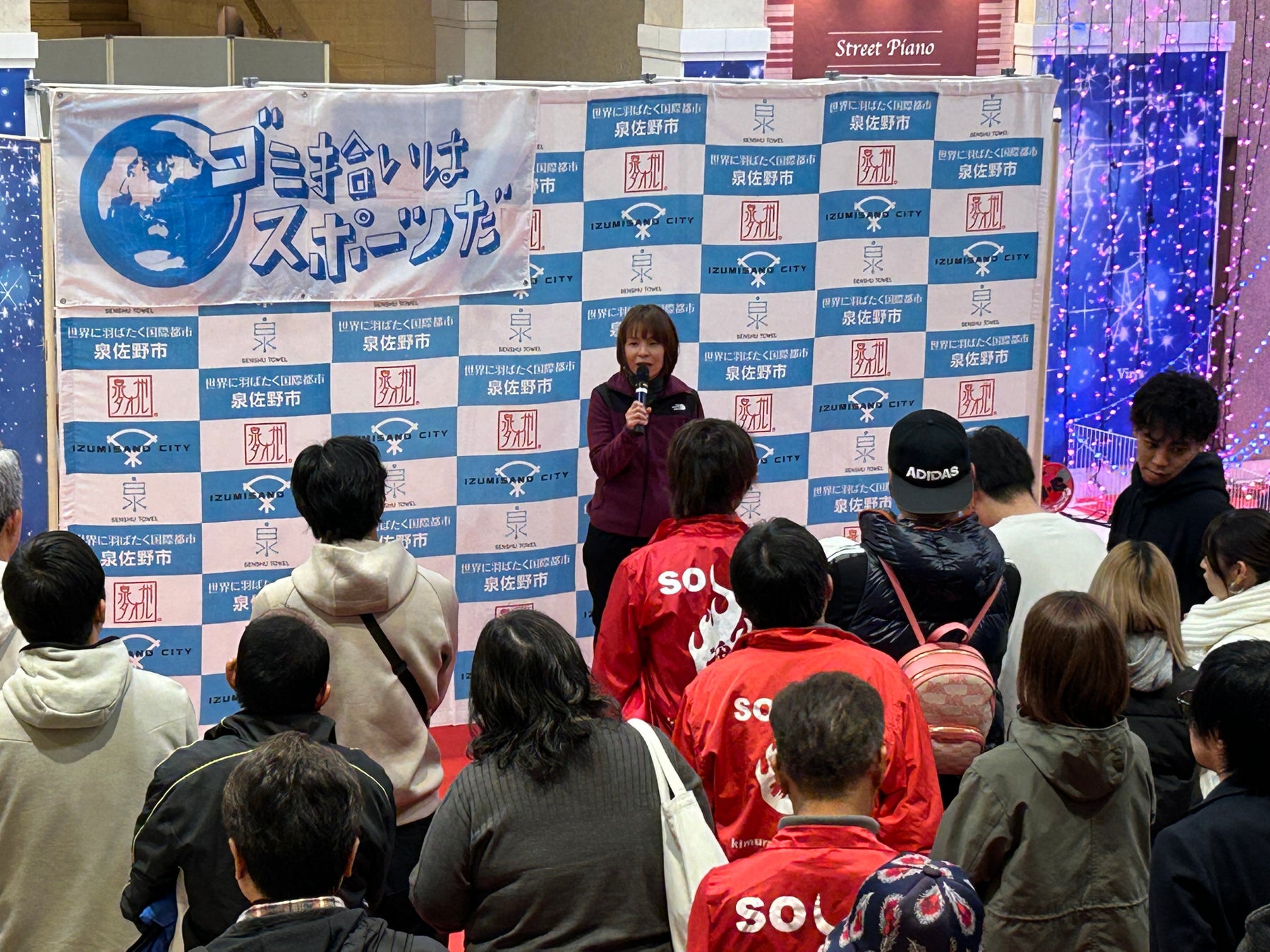 泉佐野市とりんくうプレミアム・アウトレット共同での「スポGOMI(※)」開催は今回で2回目。当日は、泉佐野副市長 真瀬三智広氏による開会の挨拶のあと、全20チーム、総勢86名の選手による「ゴミ拾いは、スポーツだ!」の掛け声で競技がスタートしました。