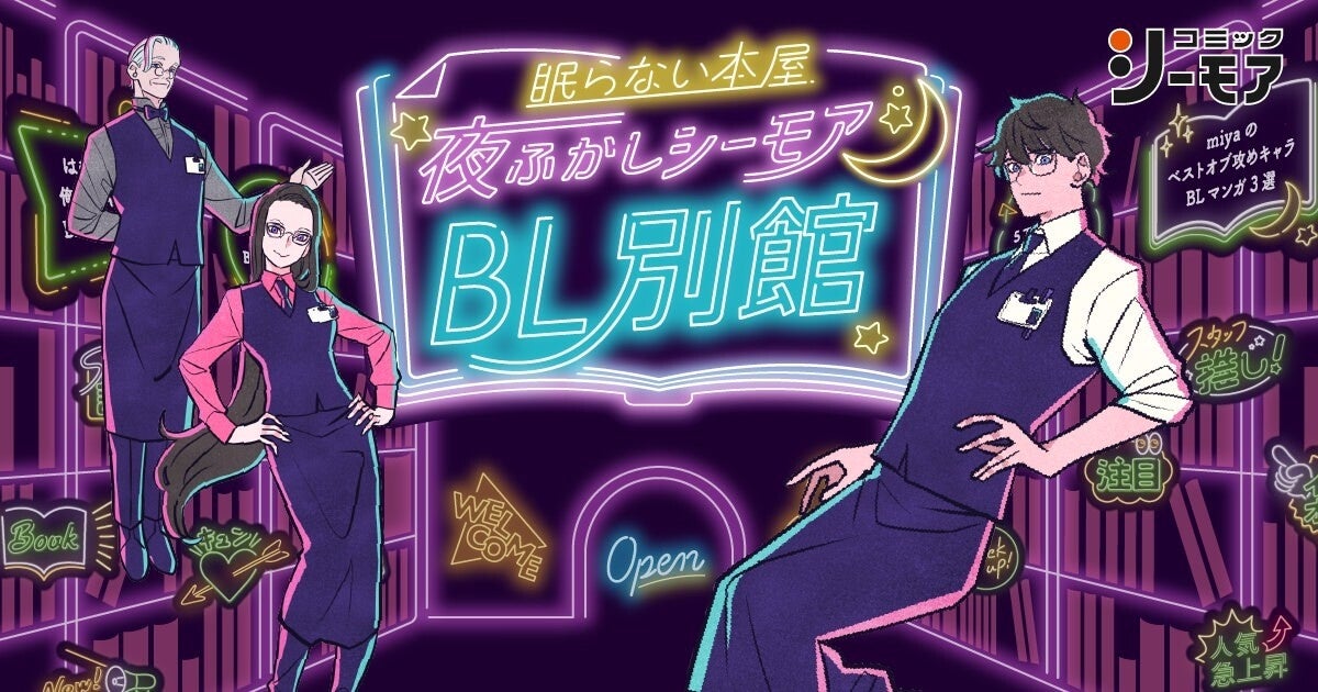 この度、BLファンの皆様からの「BL作品もぜひオススメしたい」「推したい作品がいっぱいある!」といった熱い要望を受け、「眠らない本屋 夜ふかしシーモア」< BL別館>のオープンが決定しました。オープンを記念して作品をお得に楽しめるキャンペーンも実施します。