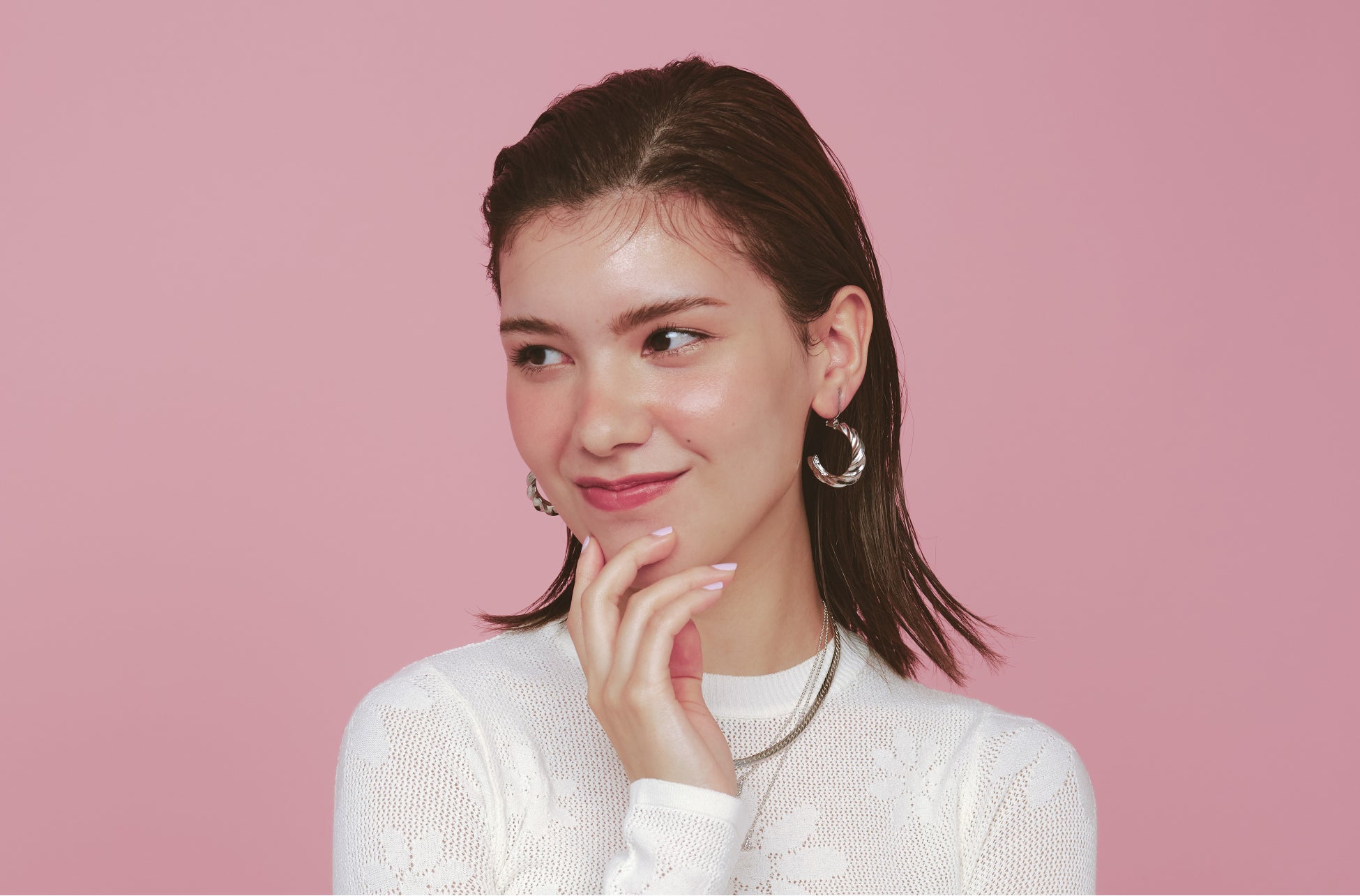 1. グロスジェル×パール成分[*]で“濡れツヤニュアンス髪” へ