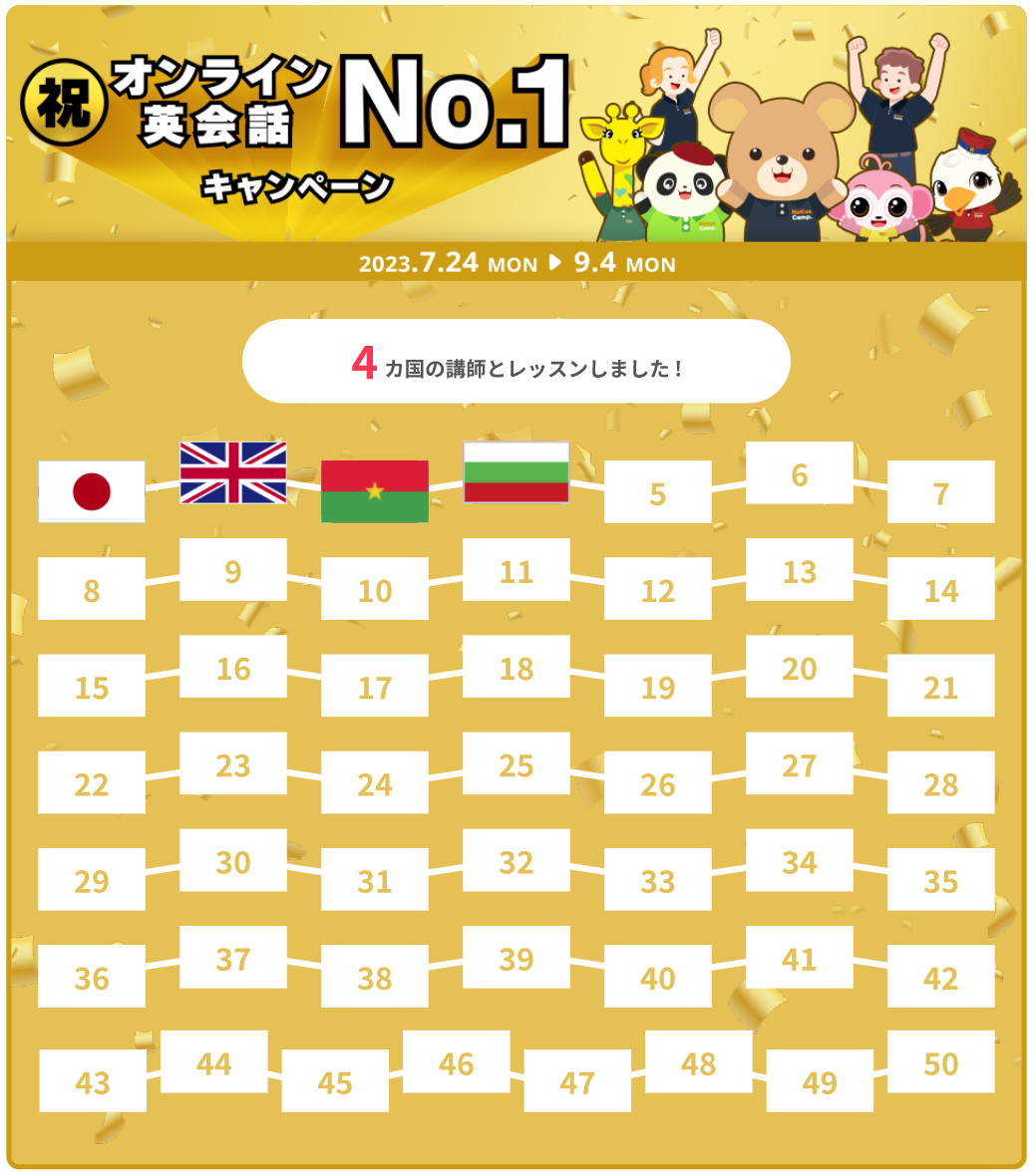 - No.1記念キャンペーン「オンライン英会話No.1祭り」