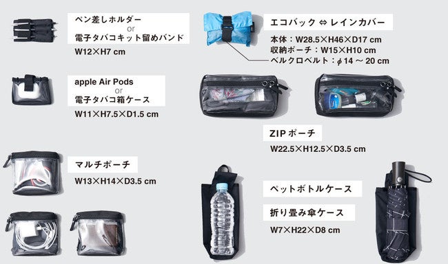 - 小物を分けて収納できるカスタマイズ式ポーチ