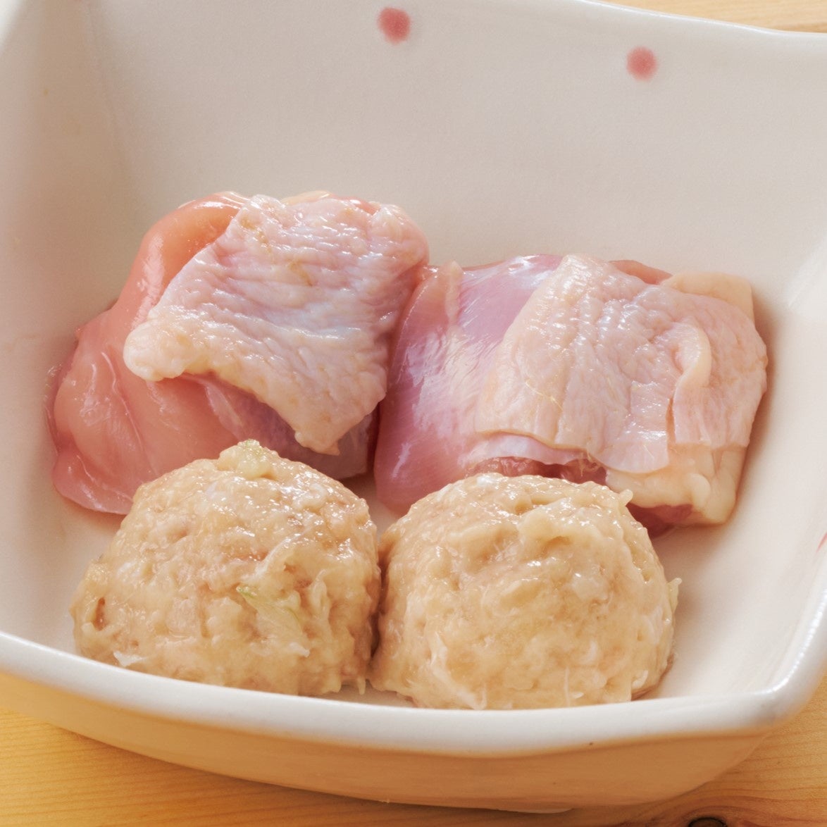 蟹爪、鶏肉、長ねぎ、栃尾揚げ、白滝、ニラ、もち、自家製つくね、舞茸、木綿豆富、白菜、もやし