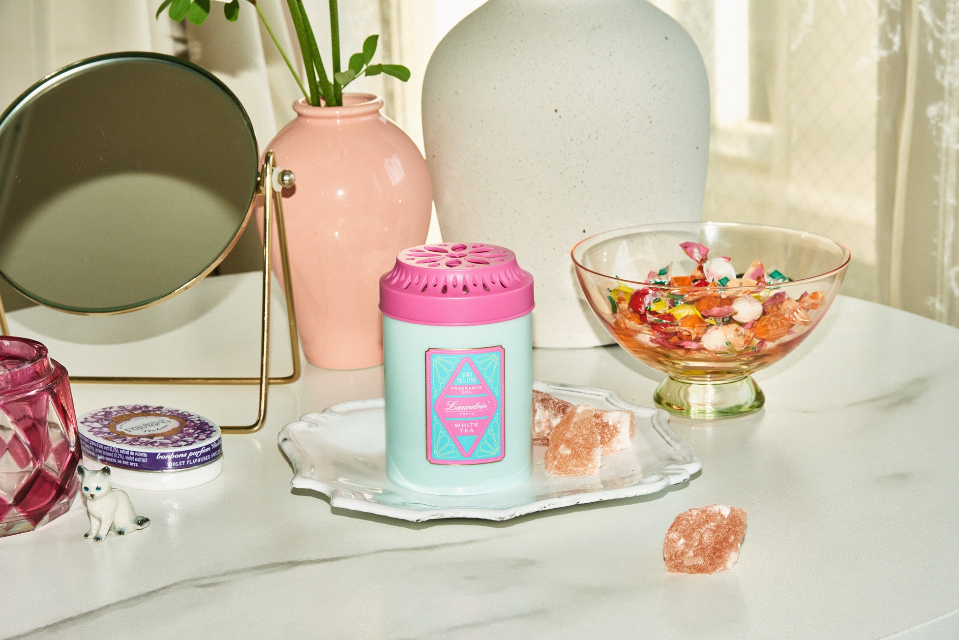 玄関やクローゼット、車のドリンクホルダーなど、どこにでも気軽に置けるコンパクトな「フレグランスジェル」。ころんとした丸いフォルムは、紅茶を保管しておく入れ物=TeaCaddy(ティーキャディー)をイメージしてデザインしました。インテリアの一部として飾っても可愛い、カラフルなデザインも魅力です。仕事や家事の合間、疲れて帰って来たときなど…様々なシーンでほっと心落ち着ける、そんなティータイムのようなひとときをお楽しみください。