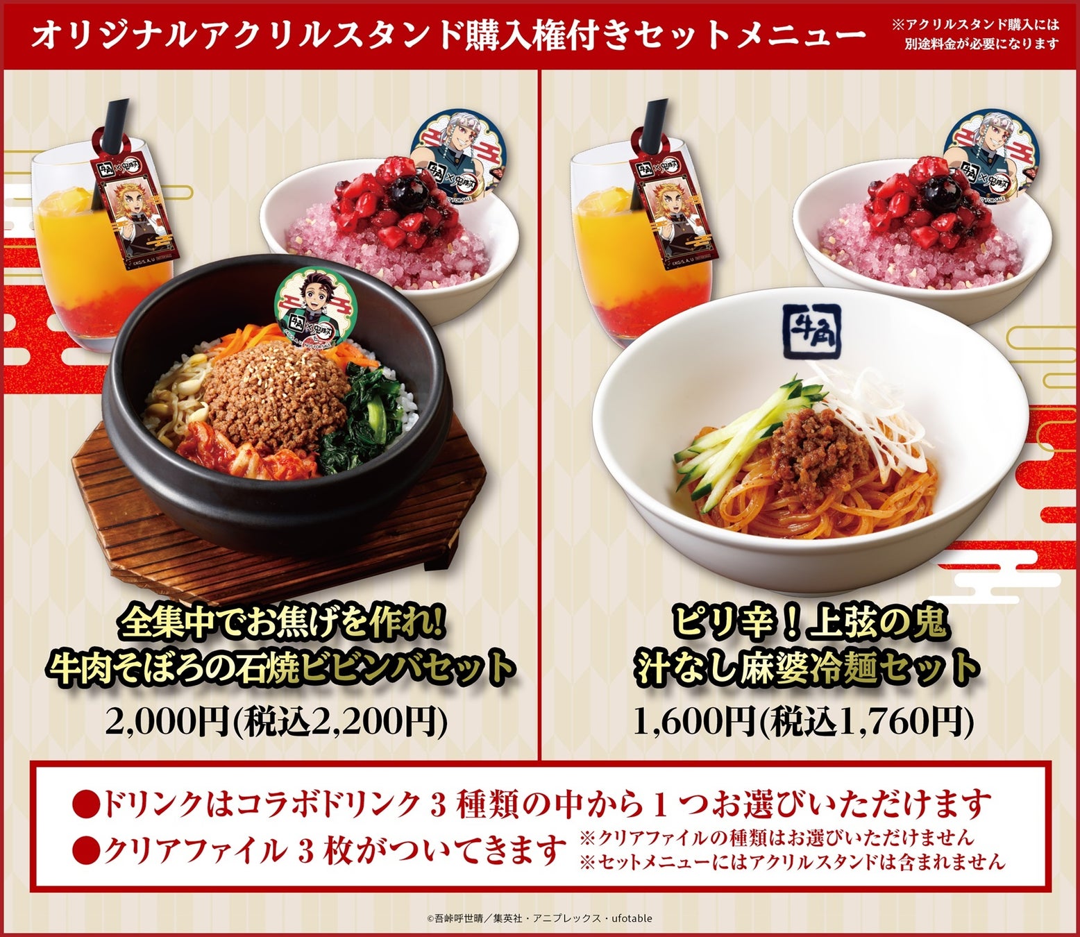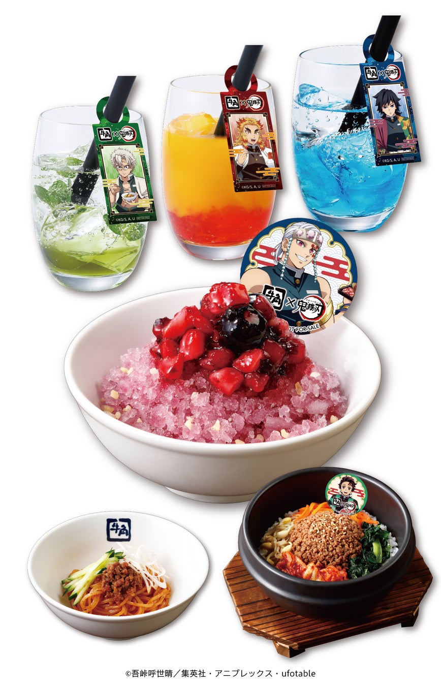 牛角×アニメ「鬼滅の刃」コラボ。「ド派手に行くぜ!音柱 宇髄天元のパチパチ爆ぜるかき氷」他、オリジナルクリアファイルがもらえる6種のコラボメニュー登場