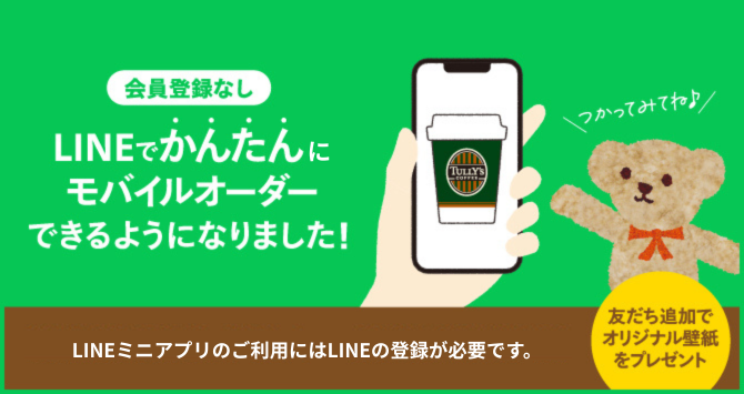 ご利用方法の詳細はこちら https://www.tullys.co.jp/service/mobileorder/line/