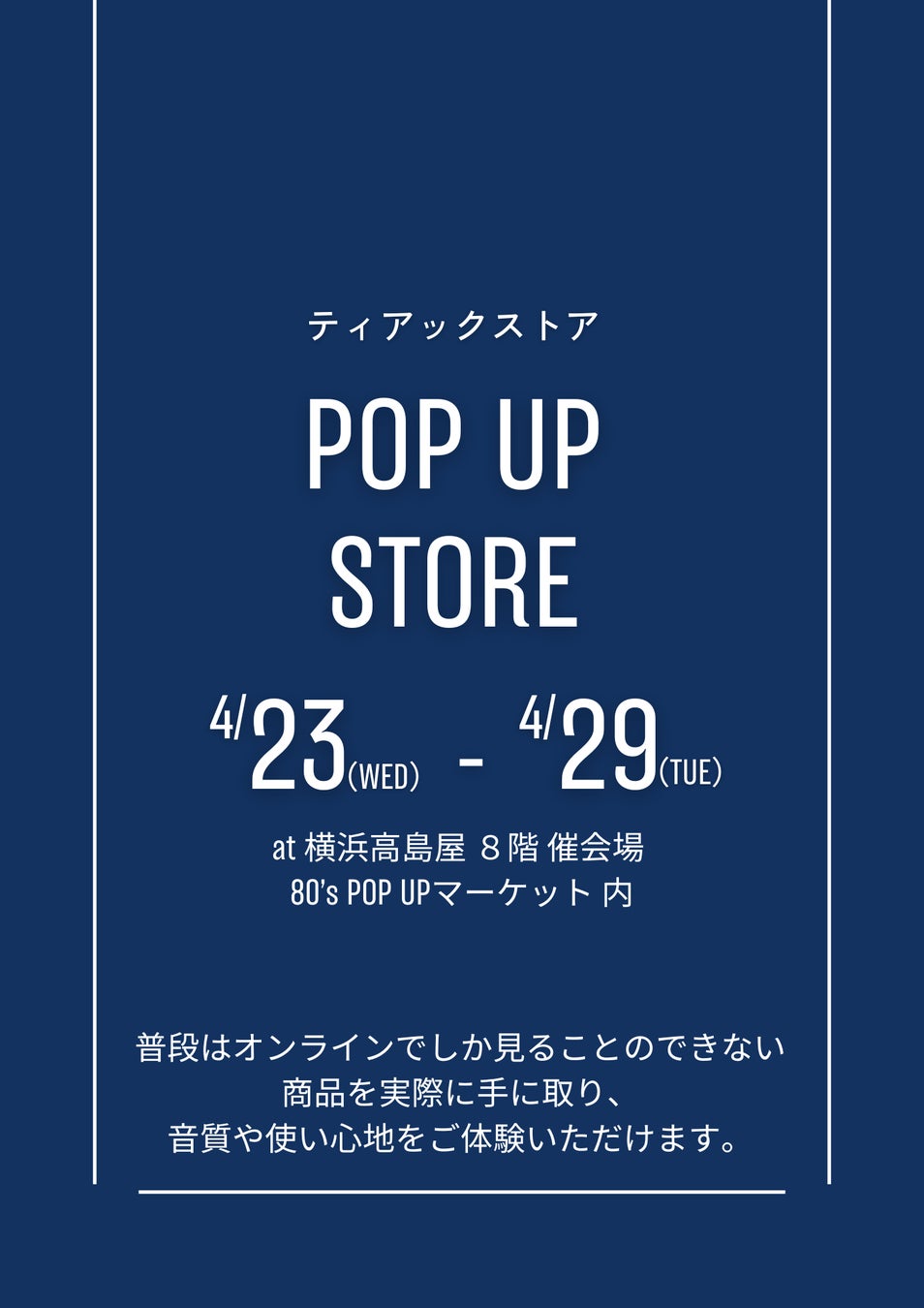 このたびティアックストアでは、通常オンラインでのみ販売している商品を実際にご覧いただける期間限定POP UPストアを出店いたします。