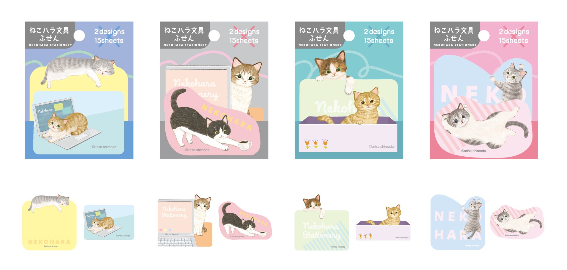 ねこハラダイカット付箋 全4種類 税込価格528円