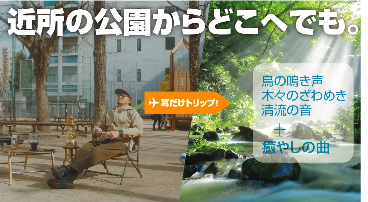 例えば、キャンプ場が理想的な環境ではなかった時、アウトドアに行きたくても行けない時、とにかく自然を感じたい時など、目をつぶればまるで森や海辺で音楽を聴いているかのように聴覚トリップができるアプリです。アプリは、製品の一般発売時期にあわせて提供開始する予定です(※2)。※2:iOSのみの配信
