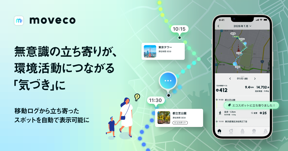 株式会社ナビタイムジャパン(代表取締役社長:大西 啓介、本社:東京都港区)は、2025年12月17日(水)より、エコな移動をサポートするアプリ『moveco(ムブコ) by NAVITIME』において、「エコスポット」へのチェックイン機能「振り返りチェックイン」を追加します。
