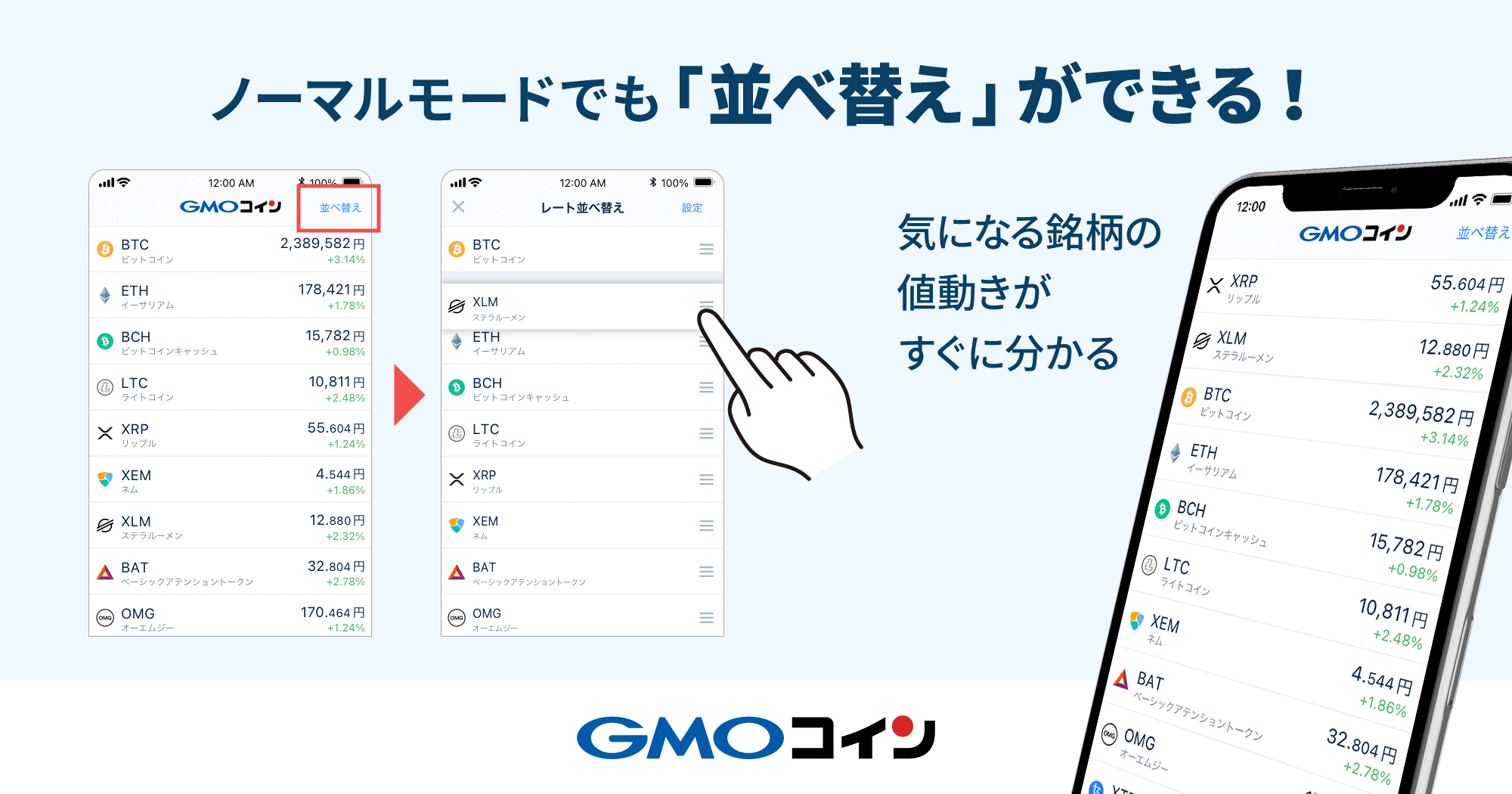 暗号資産取引のGMOコイン:アプリで気になる銘柄の値動きを素早くチェック!