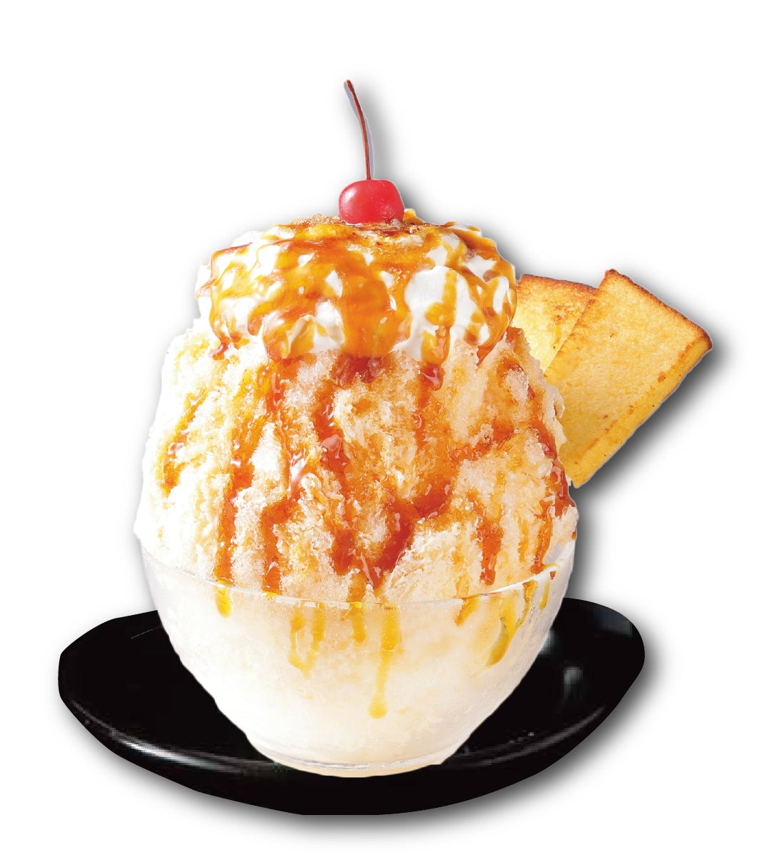 『フレンチトースト かき氷』 は、その名の通り、“フレンチトースト” をかき氷で表現しました。ふわっとしたかき氷に、卵黄・牛乳・グラニュー糖で仕上げた濃厚なアングレーズソースに、当店オリジナルの香ばしいカラメルメープルソースが贅沢な甘さを添え、仕上げに口どけなめらかなホイップクリームとレッドチェリーをトッピング。まるで “フレンチトースト” のような、リッチで上品な味わいをお楽しみいただけます。お好みで冷やしたフレンチトーストと一緒にお召し上がりください。