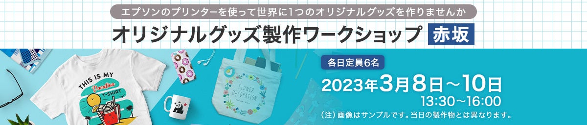 エプソン販売株式会社は、2023年3月8日~10日エプソンクリエイティブスクエア赤坂にて、ガーメントプリンターや昇華転写プリンターを使用した「オリジナルグッズ製作ワークショップ」を開催します。