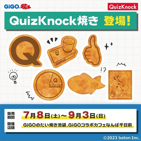 株式会社GENDA GiGO Entertainment(本社:東京都港区 代表取締役社長:二宮 一浩 以下、当社)は、「GiGOのたい焼き」にて『QuizKnock』とコラボレーションした、「QuizKnock焼き」を7月8日(土)より発売します。
