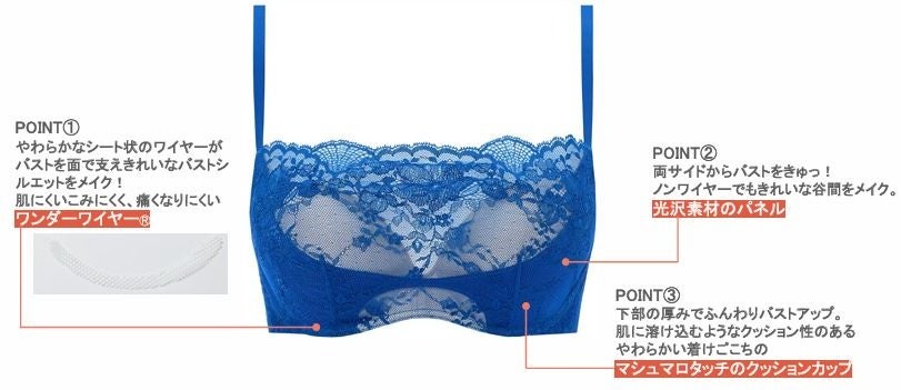 自然な丸みをつくる「ワンダーメイク」のカップシルエットや、くいこみにくい幅広のメッシュシート状のワンダーワイヤーⓇはそのままに、素材を肌に溶け込むような柔らかいクッション性のあるカップに変更し、さらに快適に進化しました。